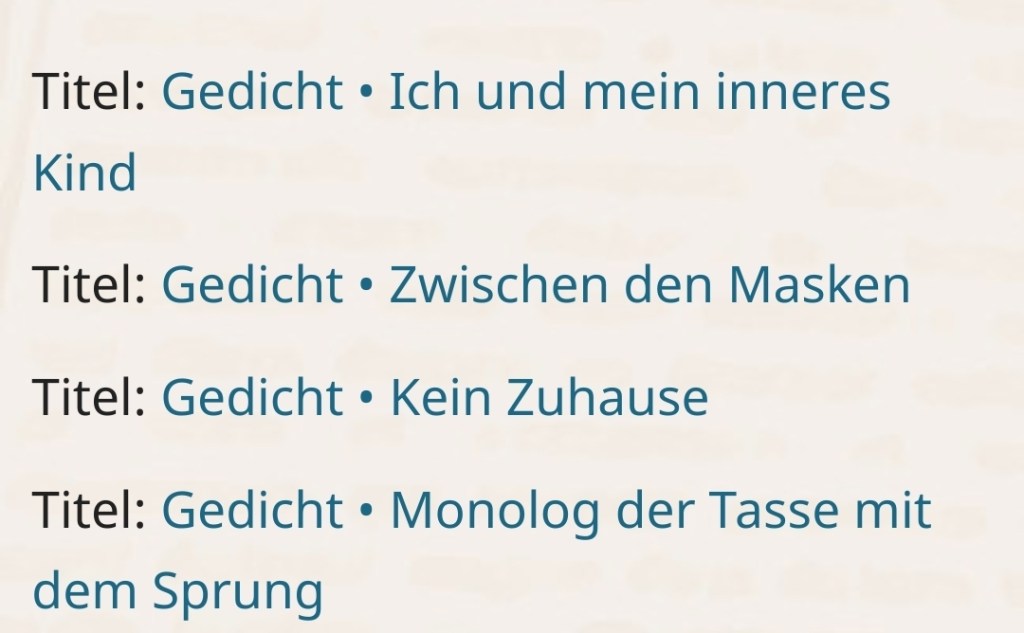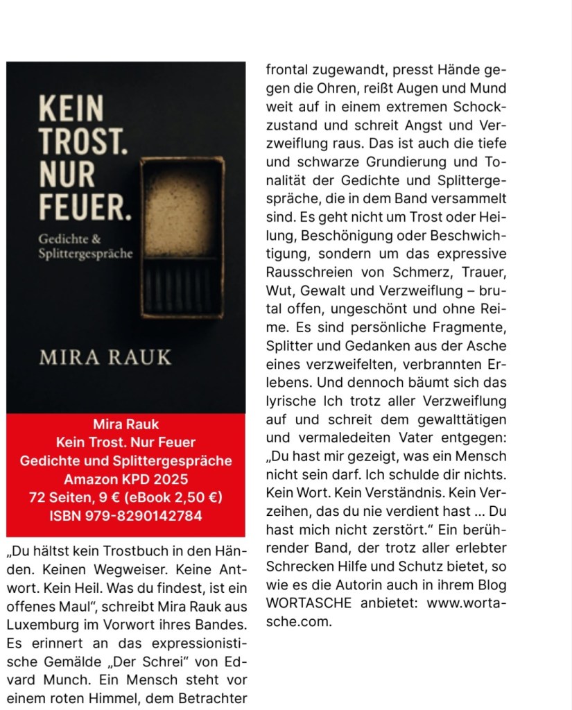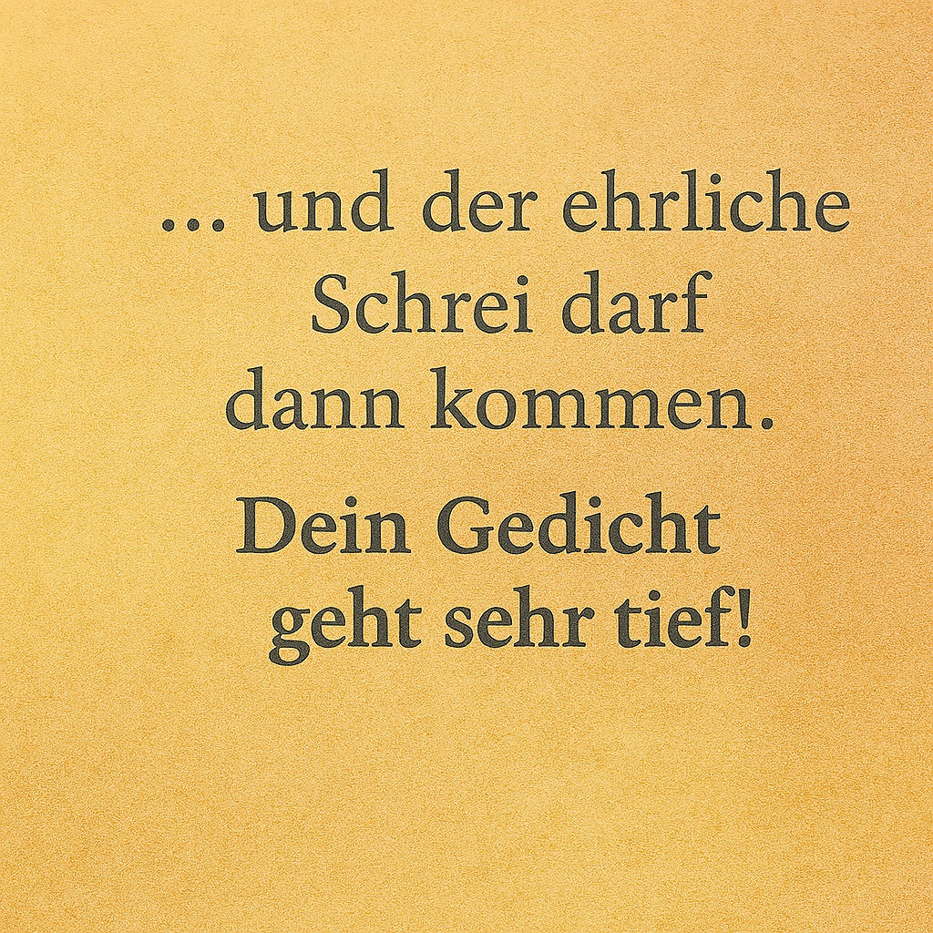 Wer hätte das gedacht – meine Gedichte kommen richtig gut an. Die Rückmeldungen sind stark: tiefgründig, berührend, viele sagen, ich spreche ihnen aus der Seele. Das fühlt sich unglaublich gut an.Was für mich lange nur Schmerz war, gibt anderen plötzlich Halt. Meine Dunkelheit hilft ihnen, sich selbst besser zu verstehen. Die ersten Presse- und Bloggerexemplare sind jetzt auch unterwegs. Ich bin gespannt, was da noch kommt.